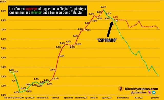 Rodríguez destacó que, aunque hay una baja en el reporte de esta semana, este debe ser inferior al 8,1% que los mercados reaccionen positivamente. Ante esta posibilidad, especula que bitcoin podría subir a USD 21.000. Pero si el índice es más bajo, podríamos bajar de precio, como sucedió el mes pasado ante una inflación no tan baja como se esperaba.